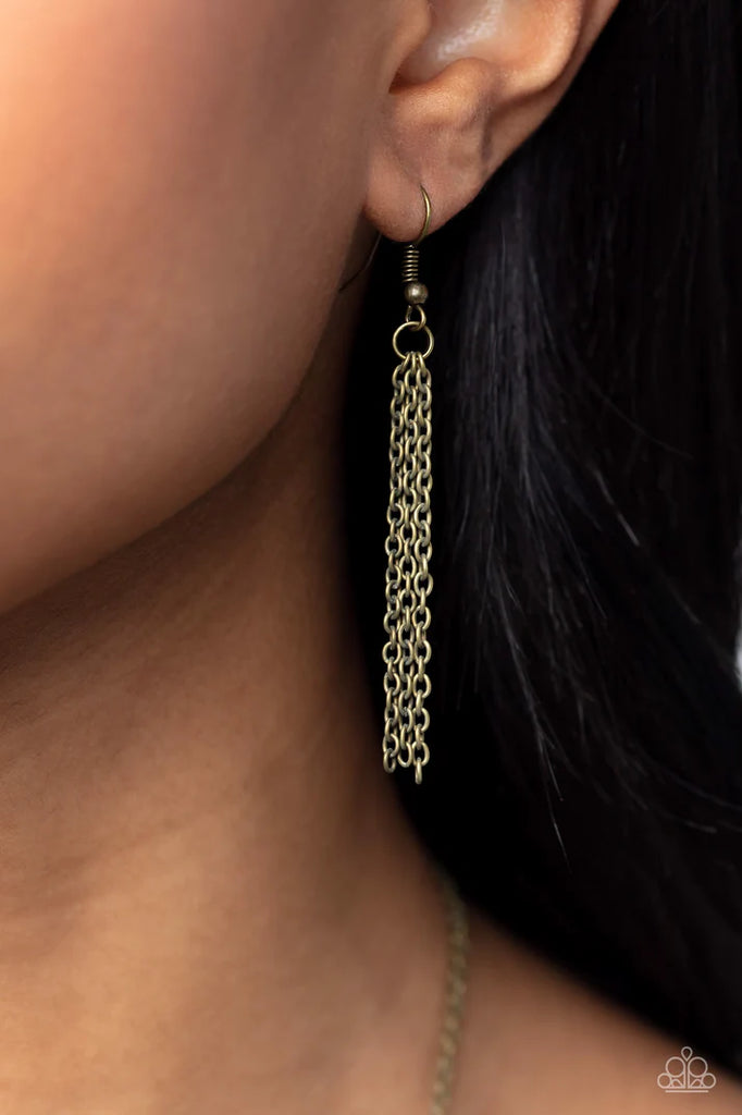 A textured sunburst pendant swings from the bottom of a lengthened brass chain. A shimmery brass chain tassel swings from the bottom of the tribal inspired pendant for a seasonal finish. Features an adjustable clasp closure.