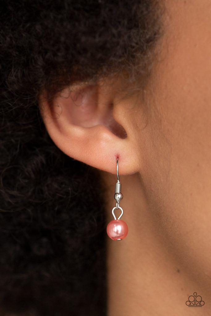 A collection of glistening silver hoops, glassy Living Coral beads, and pearly Living Coral beads trickle along a shimmery silver chain for a refined look. Features an adjustable clasp closure.
