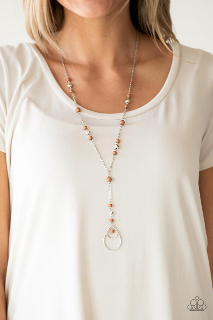 Infused with ornate silver beads, earthy brown stones trickle along a shimmery silver chain for a seasonal look. A glistening silver teardrop pendant swings from the bottom for a whimsical finish. Features an adjustable clasp closure.