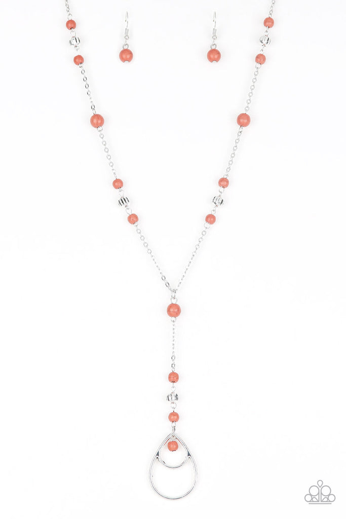 Infused with ornate silver beads, refreshing orange stones trickle along a shimmery silver chain for a seasonal look. A glistening silver teardrop pendant swings from the bottom for a whimsical finish. Features an adjustable clasp closure.