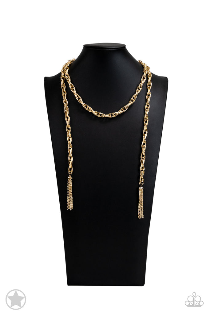 A single strand of spiraling, interlocking links with light-catching texture is anchored by two tassels of chain that add dramatic length to the piece. Undeniably the most versatile piece in Paparazzi's history, the scarf necklace features FIVE different ways to accessorize: Open Layer, Loop, Traditional Wrap, Double Knot, and Nautical Knot.