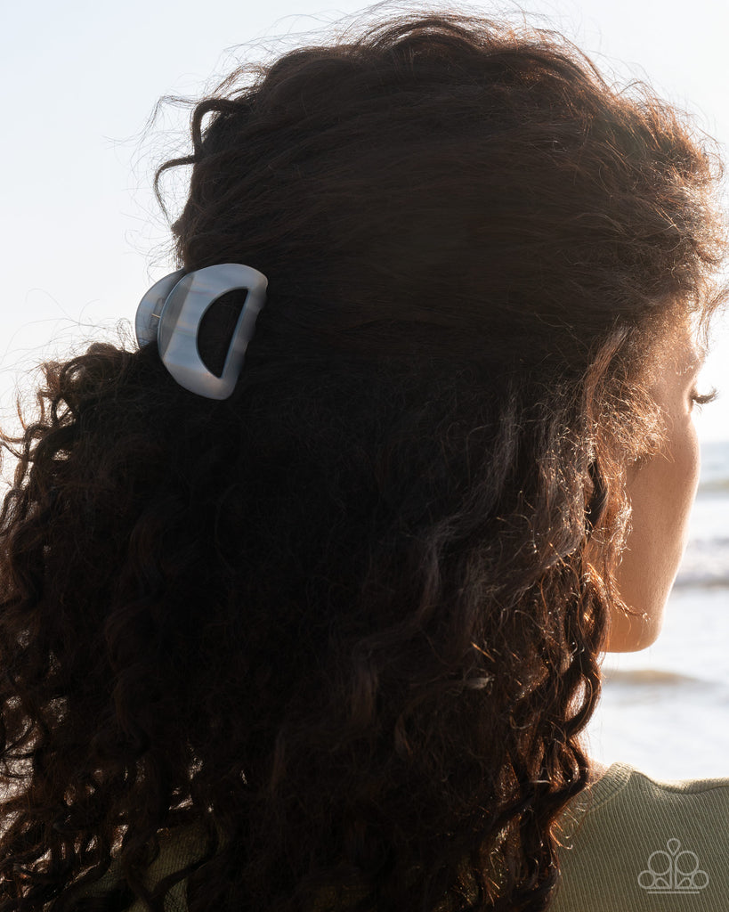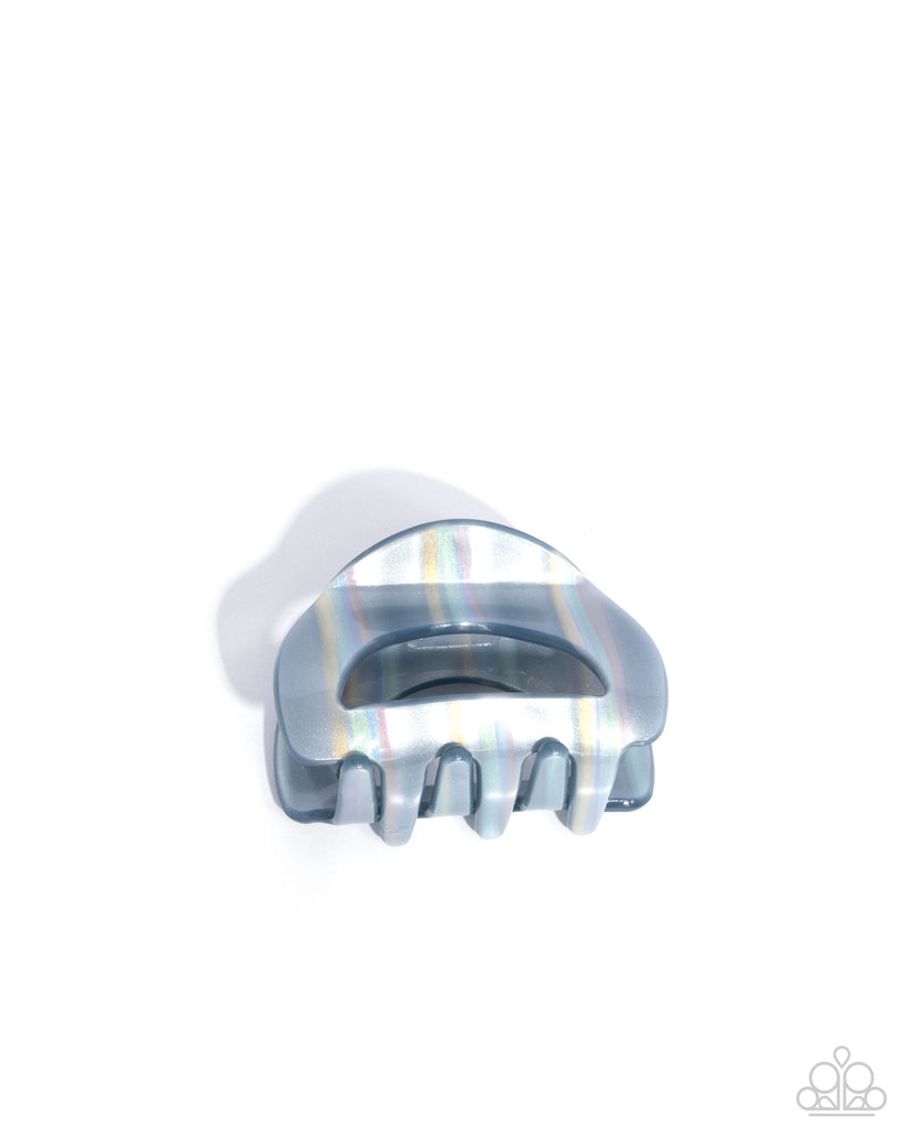 Featuring shimmery striped hues, a blue claw clip holds the hair away from the face for an on-the-go whimsical display. Clip measures approximately 2" in length and 1 1/2" in width.