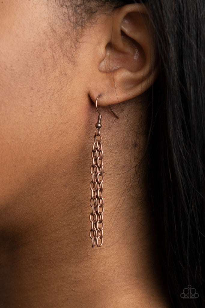 Glistening copper wildflowers climb an ornate copper backdrop that fastens into a locket-inspired frame at the bottom of a lengthened copper chain. Features an adjustable clasp closure.